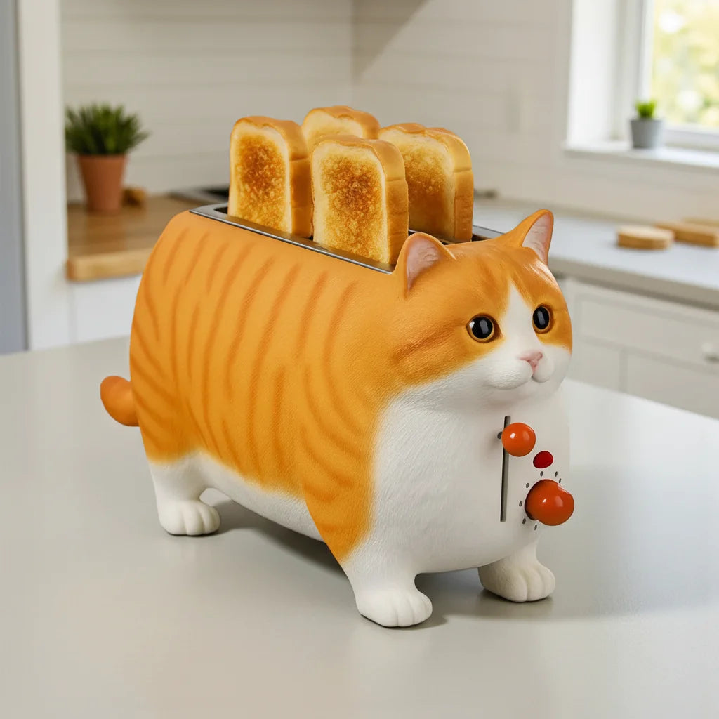 Forestil dig at starte dagen med en smilende kat på køkkenbordet, der serverer perfekt ristet brød. Det er ikke bare en toaster; det er en stemningsskaber, der spreder glæde og hygge fra første bid.